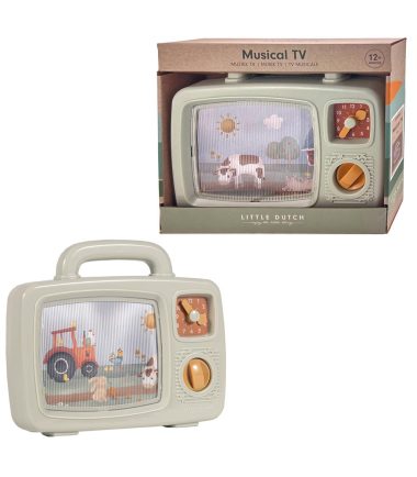 Opwindbare Little Dutch tv, met een leuke melodie en bewegend beeld uit het Boerderij thema. Geschikt voor kinderen vanaf 12 maanden.