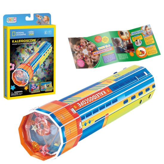 National Geographic 3D-puzzel van een caleidoscoop. Bestaat uit 5 stukjes, die zonder gereedschap of lijm in elkaar gezet kunnen worden. Na het in elkaar zetten, biedt de caleidoscoop een kleurrijke en betoverende visuele ervaring. Wordt inclusief montage instructies geleverd in full-colour doos. Geschikt voor kinderen vanaf 5 jaar.