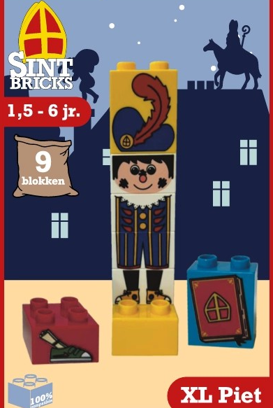 Maak je eigen creatie en laat je fantasie de vrije loop door de afbeeldingen van de voorzijde en achterzijde met elkaar te combineren. Verder zijn er nog 2 bricks met leuke afbeeldingen in sinterklaasthema.