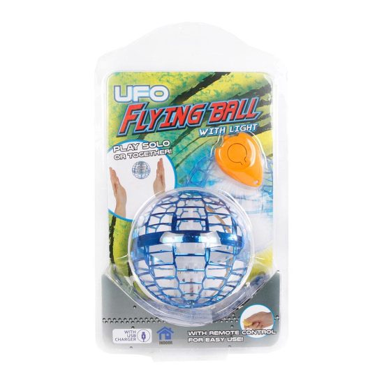 Gooi de UFO in de lucht, en deze zal als een boemerang bij je terugkomen! Bedien de vliegende bal met de afstandsbediening of met je handen. Je kunt met lichaamsbewegingen de UFO beïnvloeden, zodat je ook samen kan spelen met een vriendje of vriendinnetje. De vliegende bal heeft coole lichteffecten en een krachtige motor waardoor hij goed kan blijven vliegen. De UFO heeft een doorsnede van 9,4 centimeter.