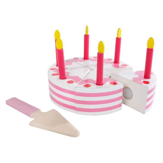 Met deze leuke houten taart wordt een verjaardag vieren nog leuker! De taart is perfect voor thuis of in het klaslokaal voor rollenspel. De taartstukken zitten met klittenband aan elkaar vast en kunnen zo gemakkelijk los gemaakt worden door kleine handjes. Met de taartschep, serveren ze heerlijke stukjes!