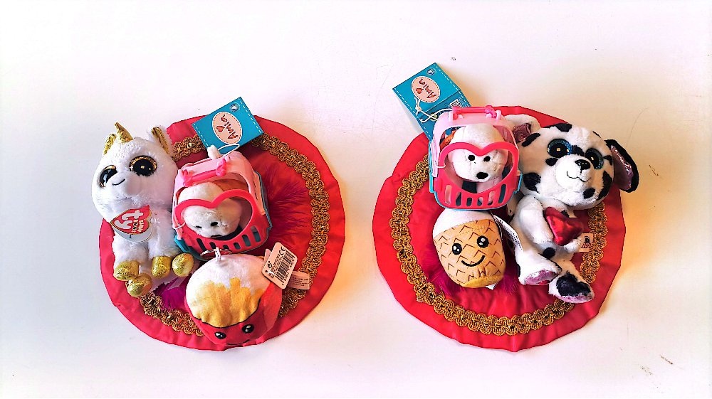 Knuffelpakket bestaat uit een TY Knuffel, unicorn in mand, sleutelhanger en een pietenmuts. Samenstelling verschilt per pakket. Prijs is per pakket.