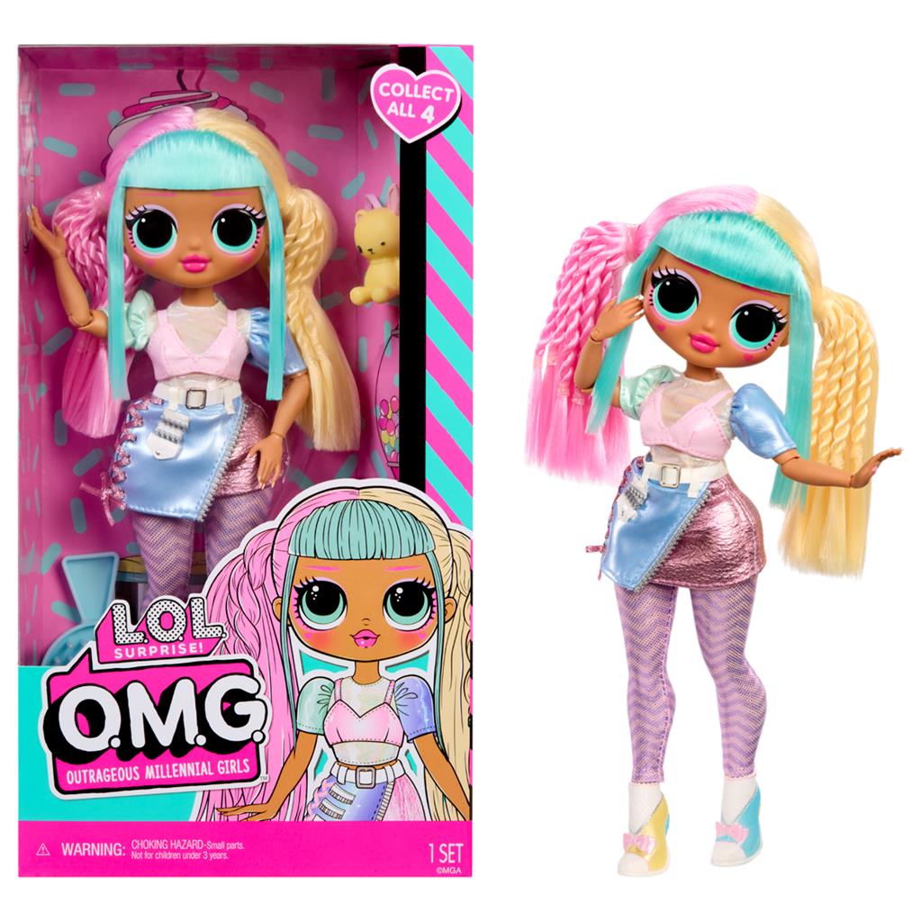 Maak kennis met onze nieuwe collectie L.O.L. Surprise! OMG-modepop Candylicious. Verzamel alle 4 de populaire OMG-poppen in gloednieuwe, oogverblindende looks in een verpakking met raampje zodat je hun prachtige gezichtjes, supermooie haar en unieke mode kunt bekijken.
