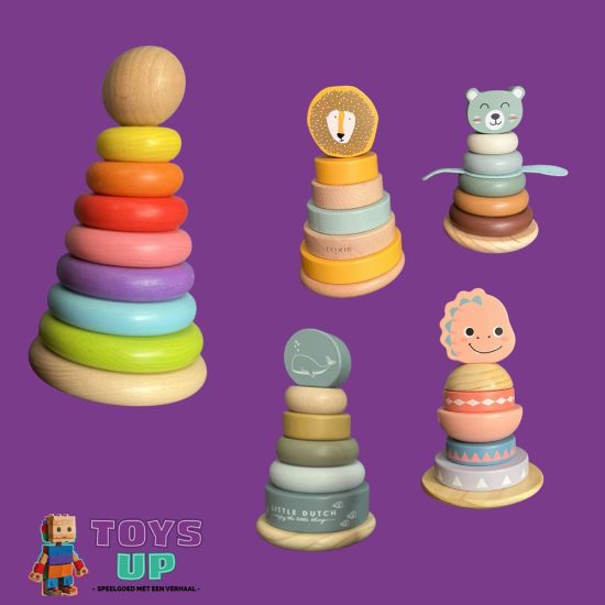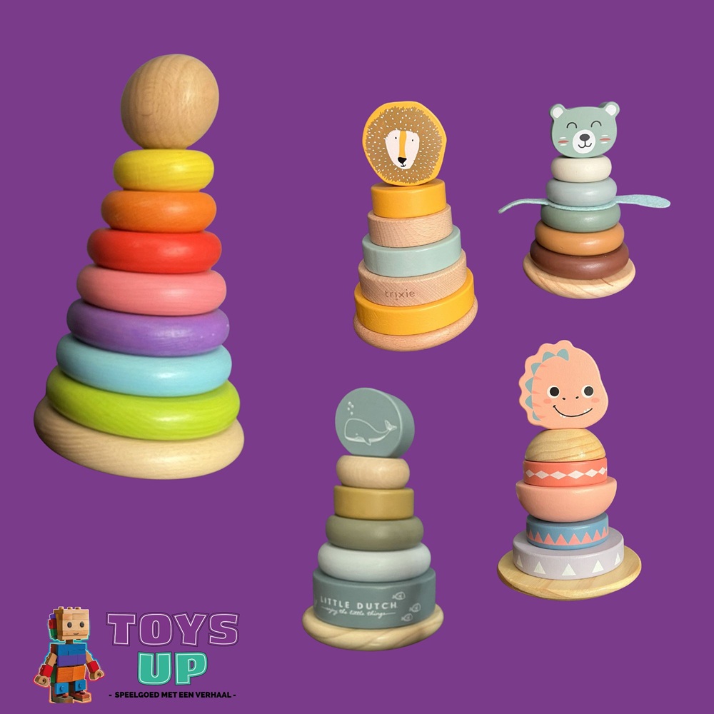 De stevige houten ringen zijn duurzaam en veilig, waardoor stapelen keer op keer een feestje wordt. Elke toren is uniek, juist omdat we met pre-loved speelgoed werken.